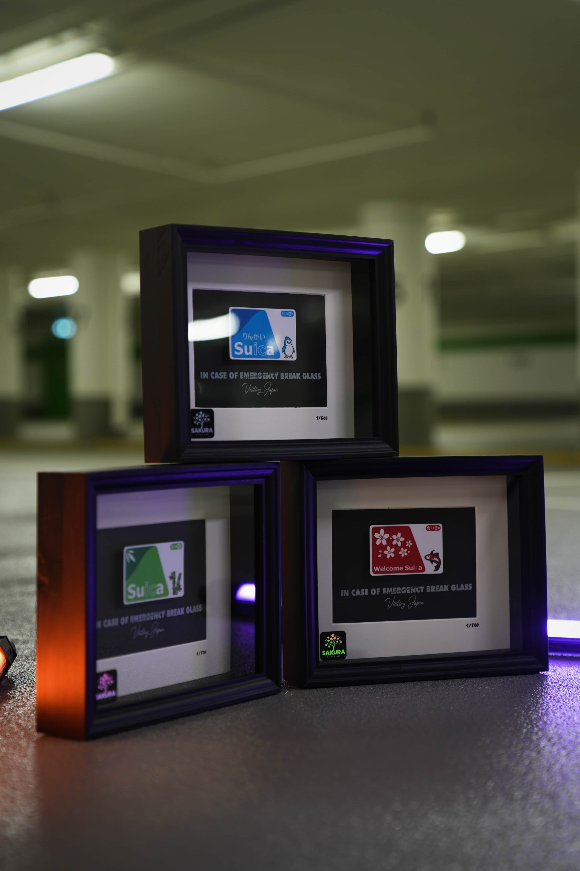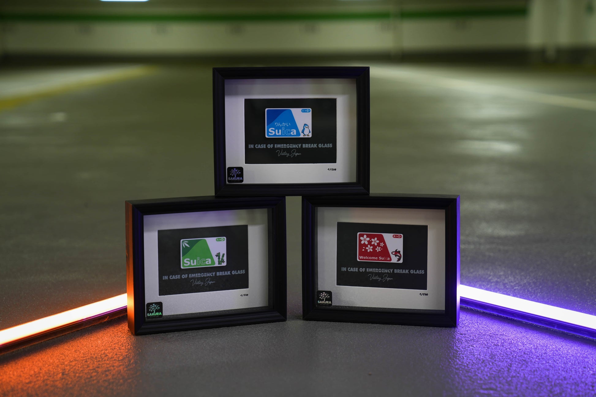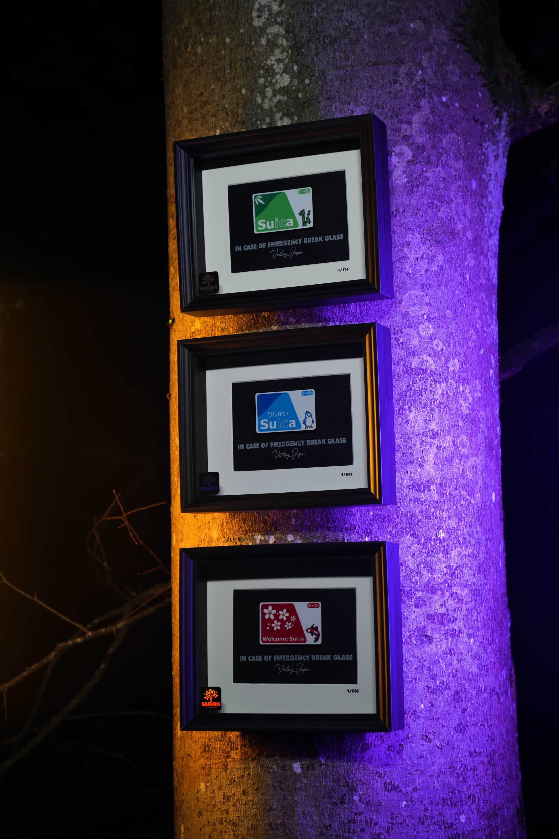 This exclusive trio package features three framed "In Case of Travelling Break Glass" art pieces inspired by iconic Japanese train transit cards. Perfect for collectors and travel enthusiasts, these pieces add humor and style while paying tribute to the culture of Japan's transportation system. Display them together for a striking statement or spread them out for a cohesive theme throughout your space.