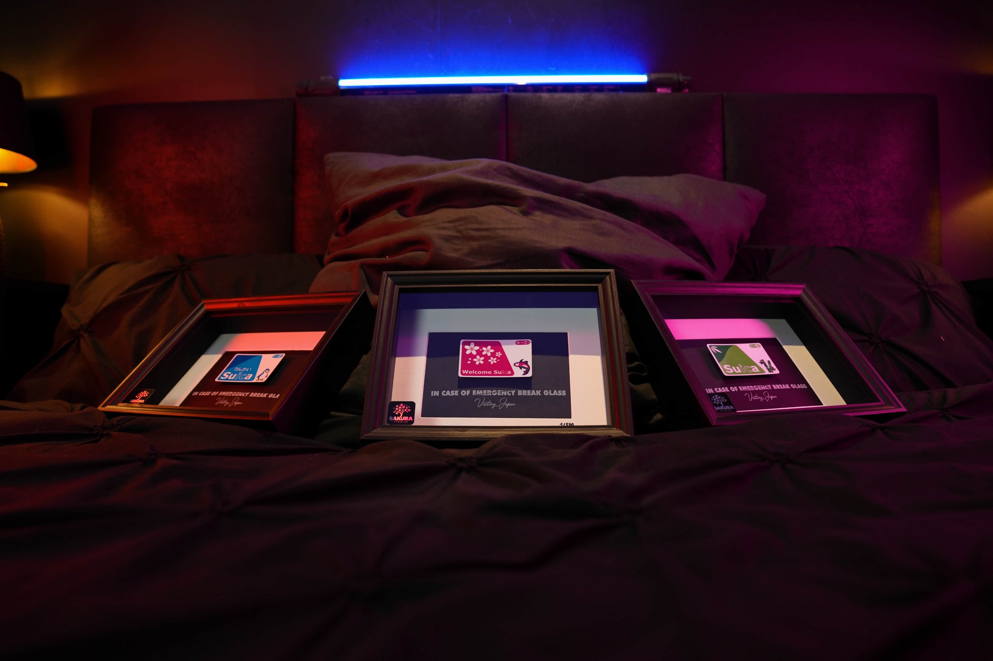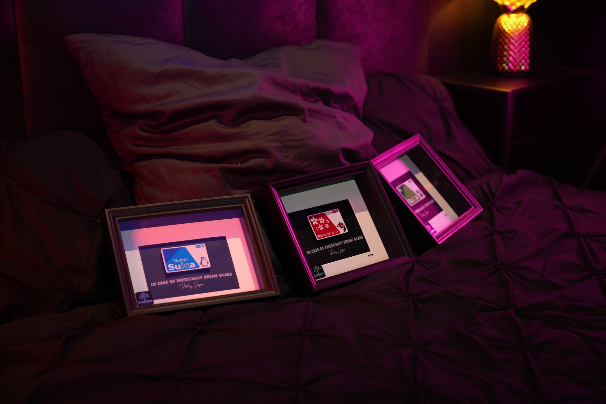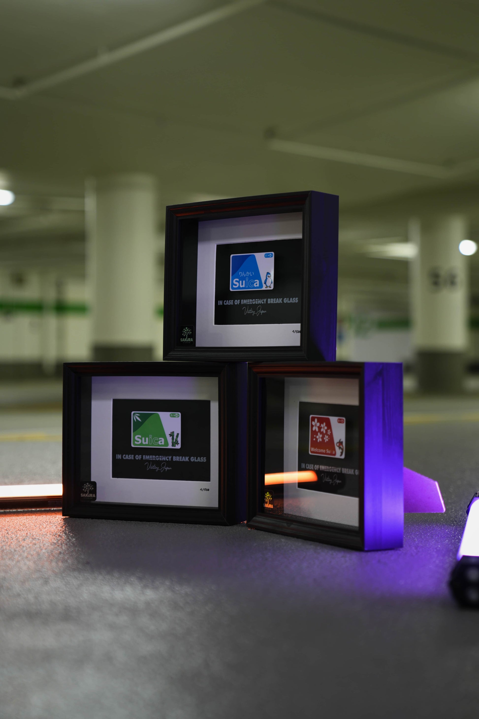 This exclusive trio package features three framed "In Case of Travelling Break Glass" art pieces inspired by iconic Japanese train transit cards. Perfect for collectors and travel enthusiasts, these pieces add humor and style while paying tribute to the culture of Japan's transportation system. Display them together for a striking statement or spread them out for a cohesive theme throughout your space.